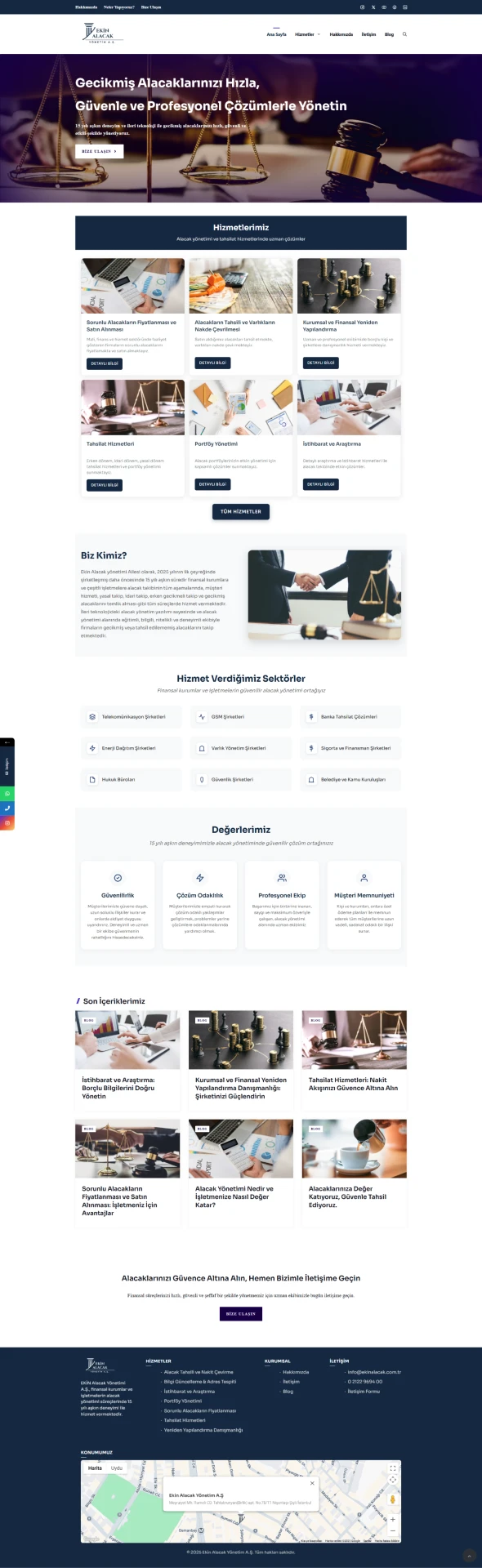 Ekin Alacak Yönetim A.Ş web tasarımı, hız optimizasyonu ve gerekli tüm kurulumların yapılması işlemleri TR Web Tasarım tarafından yapılmıştır.