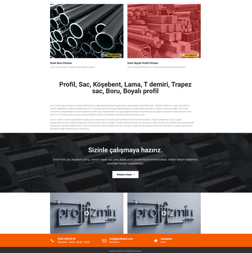 İzmir ve çevresinde hizmet veren metal sanayi ürünleri satışını yapan kurumsal bir firmanın web tasarımı ve gerekli tüm teknik işlemler tarafımızca yapılmıştır.