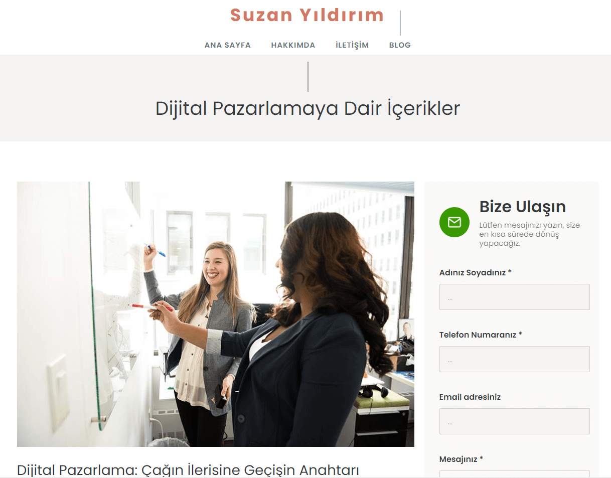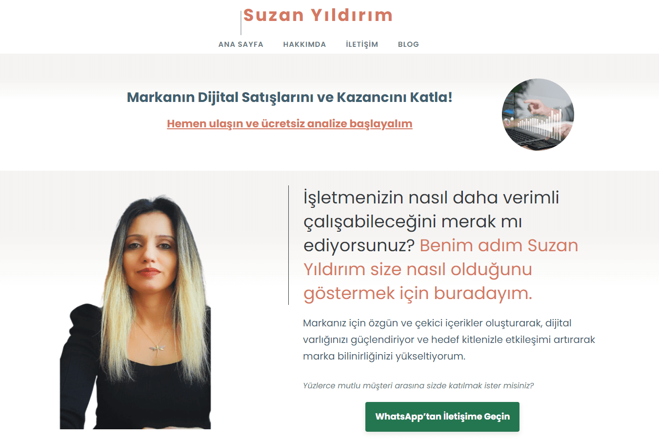 Dijital Pazarlama Uzmanı, Suzan Yıldırım için tasarladığımız web sitesi.